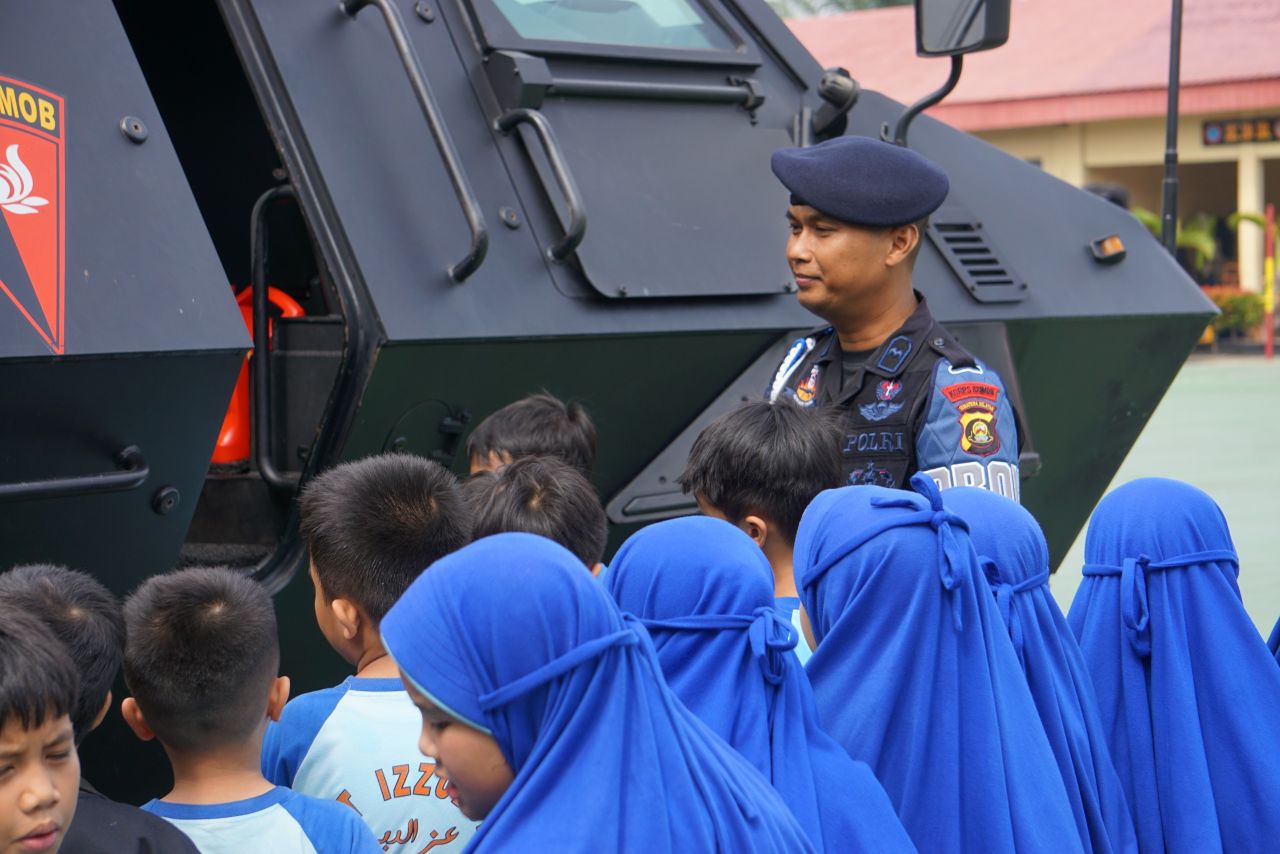 Dalam kegiatan ini, para siswa-siswi dikenalkan dengan berbagai peralatan taktis dan kendaraan operasional Brimob, serta mendapat penjelasan langsung dari personel mengenai fungsi dan penggunaannya. Tak hanya itu, mereka juga diajak menyaksikan demo keterampilan Brimob, yang menambah rasa kagum sekaligus bangga terhadap sosok polisi yang tangguh dan disiplin.