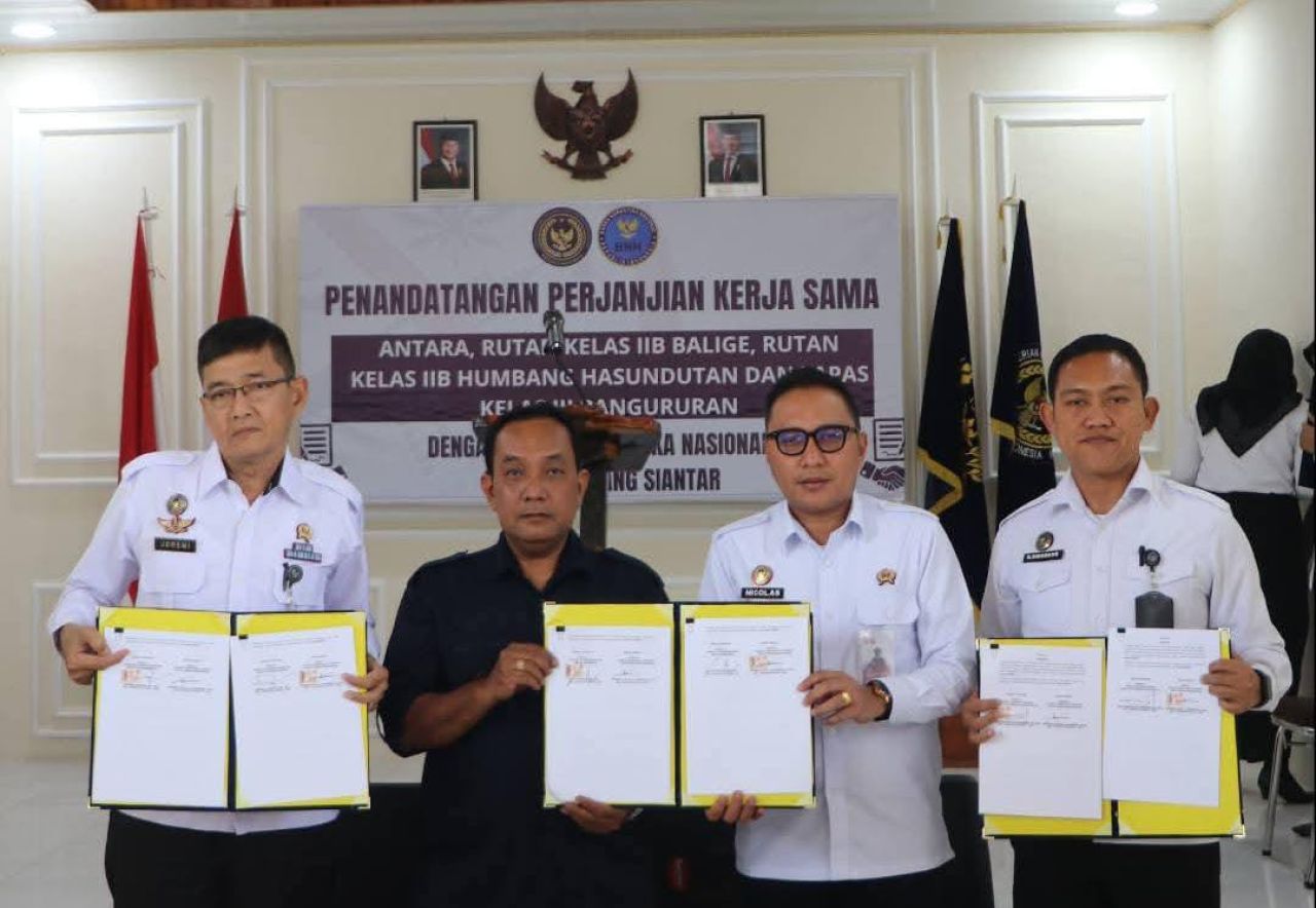 KABUPATEN TOBA (Beritakeadilan.com, Sumatera Utara)-Dalam upaya memperkuat pelaksanaan Program Rehabilitasi Pemasyarakatan Tahun 2025, tiga Unit Pelaksana Teknis Pemasyarakatan di wilayah Tapanuli Raya yakni Rumah Tahanan Negara Kelas IIB Balige, Rumah Tahanan Negara Kelas IIB Humbahas, dan Lembaga Pemasyarakatan Kelas III Pangururan, melaksanakan kegiatan penandatanganan Perjanjian Kerja Sama (PKS) dengan BNN Kota Pematangsiantar, Selasa (21/10/2025)