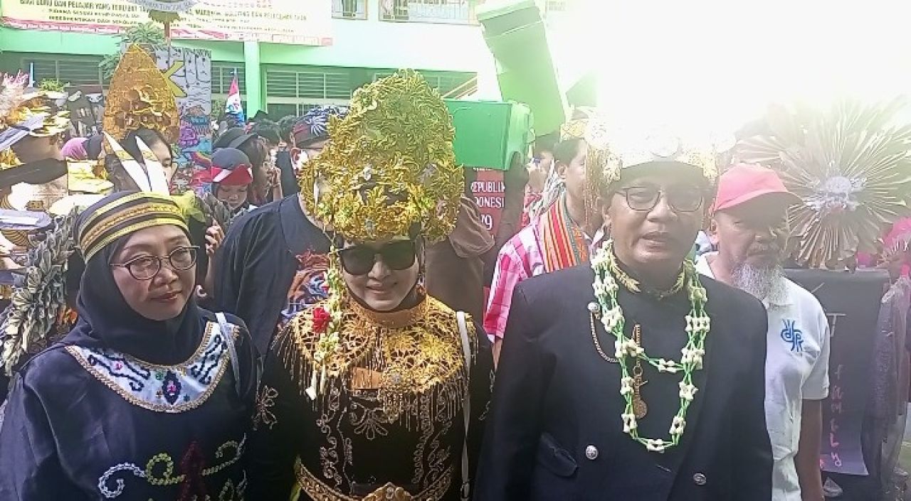 Ribuan pelajar dengan berbagai pakaian adat pun ikut dalam karnaval perayaan puncak hari kemerdekaan RI. Bahkan yang tak kalah menarik, terdapat pakaian yang terbuat dari berbagai sampah plastik dan dikenakan sebagai gaun oleh sejumlah siswi peserta karnaval.