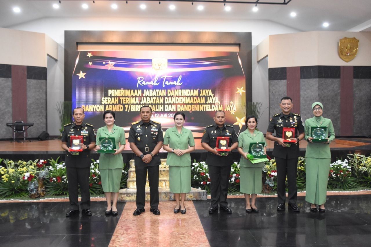 Ucapan yang sama juga disampaikan kepada Ny. Eva Parada Tampubolon, Ny. Dewi Sartika Nicolas Sirilus dan Ny. Dewi Rusiana Hendra Suryaningrat, yang telah mendampingi suami dengan baik selama bertugas di Kodam Jaya. “Semoga senantiasa diberikan kesabaran, kekuatan dan kesetiaan dalam mendampingi suami untuk mengemban tugas dan tanggung jawab di tempat tugas yang baru”, pesan Pangdam.