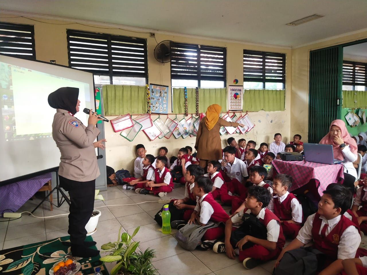 Kedatangan polisi wanita (polwan) dari satuan pembinaan masyarakat (sat binmas) polres itu didampingi Kepala UPT.Satuan Pendidikan SDN Poris Plawad 09, Tati Haryati,S.Pd.