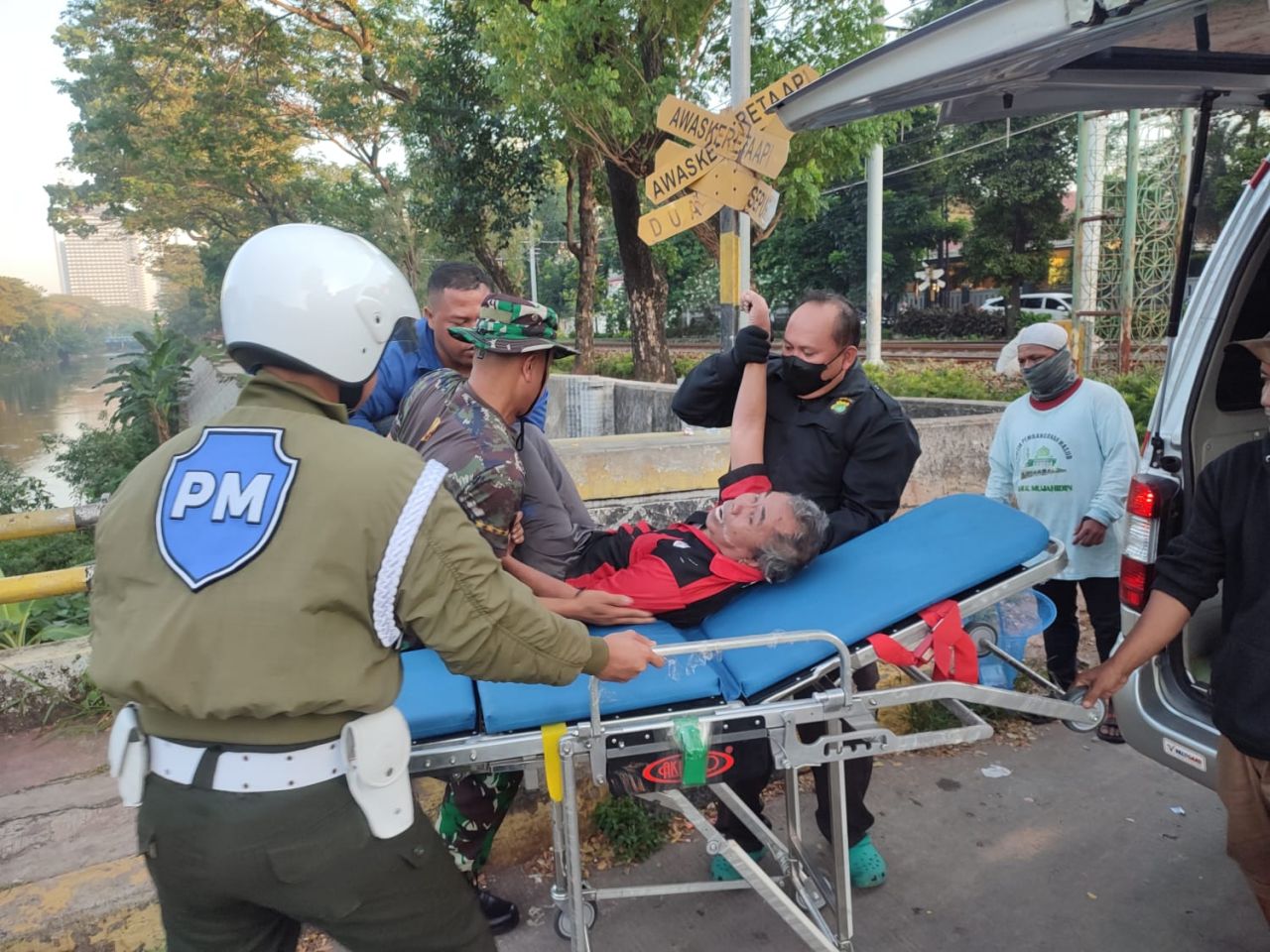 Korban tidak sadarkan diri dan dibawa ke Puskesmas Halimun Setiabudi, menggunakan ambulance Pomdam Jaya dibantu Babinkantibnas dan warga. (M.NUR)