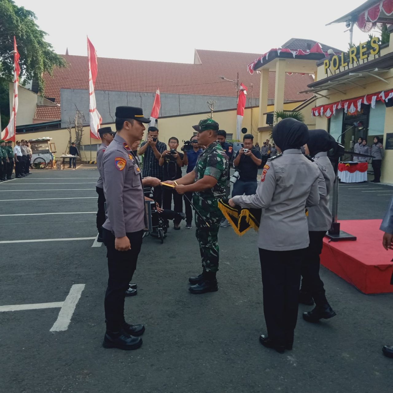 Adapun sebagai penanggung jawab dalan gelaran apel bersama ini Kapolres Metro Jakarta Utara Kombes Pol Gidion Arif Setyawan, S.I.K., S.H, M.Hum, juga hadir Dandim 0502/JU Letkol Kav Tofan Tri Anggoro, B.Sc, Wakapolres Metro Jakarta Utara AKBP Wiraga Dimas Tama, S.I.K M.Si, PJU Polres Metro Jakut, Danramil 01/Koja Mayor Kav Didik, SE, Danramil 03/Tanjung Priok Mayor Kav Teguh, Pasi Intel Kodim 0502/JU Mayor Inf Yulius Dwi Putranto Utomo Sigar serta anggota TNI, Polri dan masyarakat Jakarta Utara.