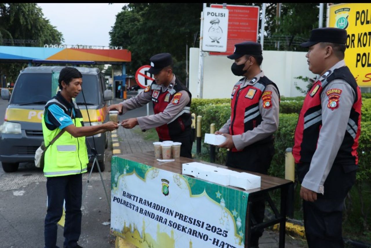 Awal Ramadhan 1446H, Polresta Bandara Soetta Bagi-bagi Takjil di Area Kargo