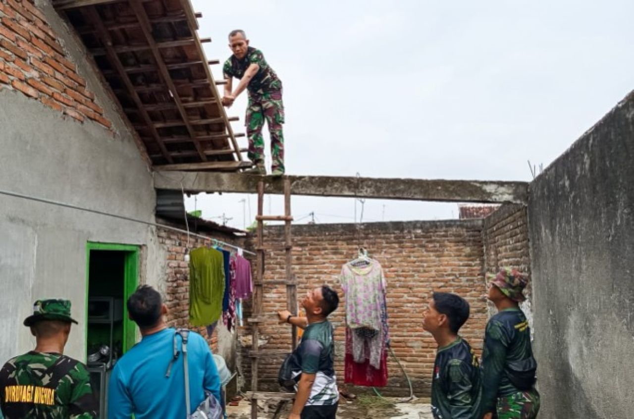 KABUPATEN BOJONEGORO (Beritakeadilan.com, Jawa Timur) – Bersama Perangkat Desa dan puluhan warga RT.028 dan RT.006/RW.001 Desa Campurejo, Selasa (30/9/2025), jajaran Bintara Pembina Desa atau Babinsa Koramil 01/Bojonegoro Kodim 0813 Bojonegoro melaksanakan karya bakti membantu pemasangan genteng rumah warga yang rusak akibat hujan deras disertai angin kencang.