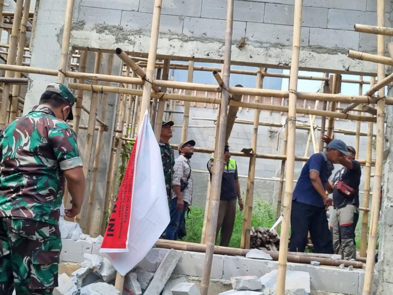 JAKARTA PUSAT (Beritakeadilan, DKI Jakarta) – Selasa (9/5) jajaran Babinsa kelurahan Gunung sahari dipimpin Wadanramil Koramil 02/Sawah Besar melaksanakan penertiban Bangunan yang tidak memiliki Ijin Mendirikan Bangunan(IMB) diwilayah kelurahan Gunung Sahari Kecamatan Sawah Besar.