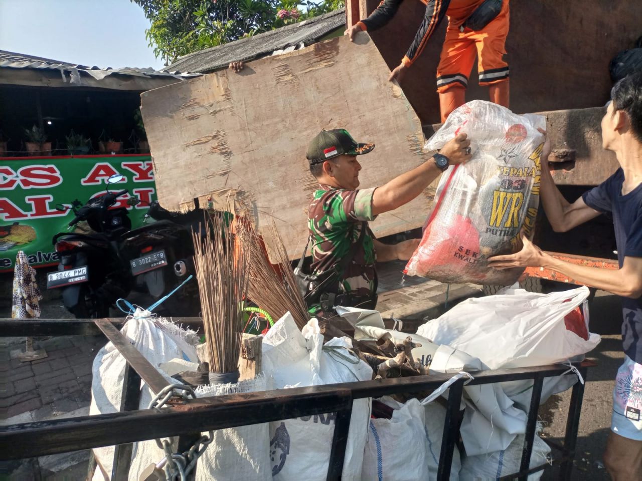 Babinsa Kelurahan Petamburan Peltu Edy Ferdian Bersama Tiga Pilar Giat “Gerebek Lumpur”