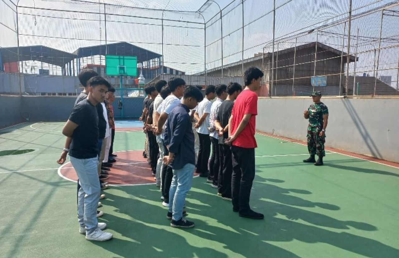 Babinsa Koramil 04 Gambir/0501 JP Tanamkan Sikap Disiplin Karang Taruna Kampung Pancasila Kelurahan Petojo Utara