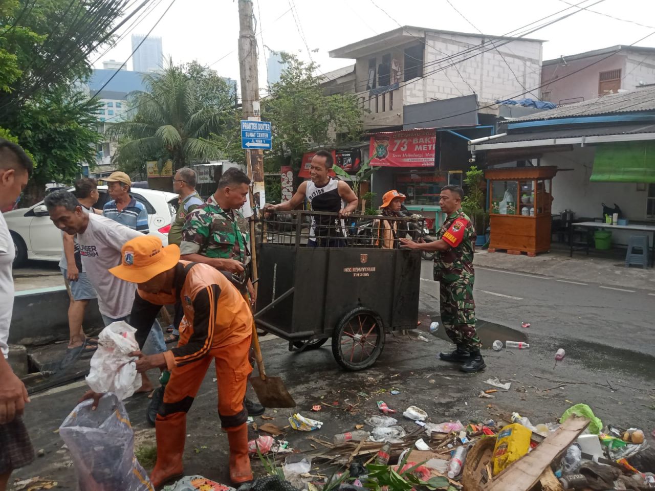 Mengingat banyaknya sampah rumah tangga yang menghambat saluran air, babinsa beserta tiga pilar melakukan himbauan kepada warga untuk turut menjaga kebersihan dilingkungan masing masing, dengan tidak membuang sampah sembarangan terutama sampah rumah tangga.