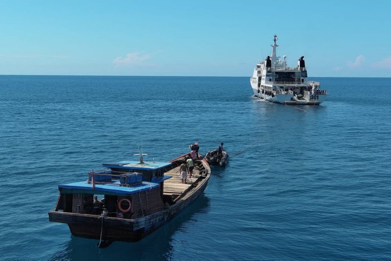 Selain pelanggaran administratif, kapal juga mengalami kerusakan mesin. Guna mencegah risiko lebih lanjut, KN. Tanjung Datu-301 melakukan proses towing terhadap KM Doa Restu Ibu Jaya menuju Batam untuk proses penyelidikan dan penanganan hukum lebih lanjut.