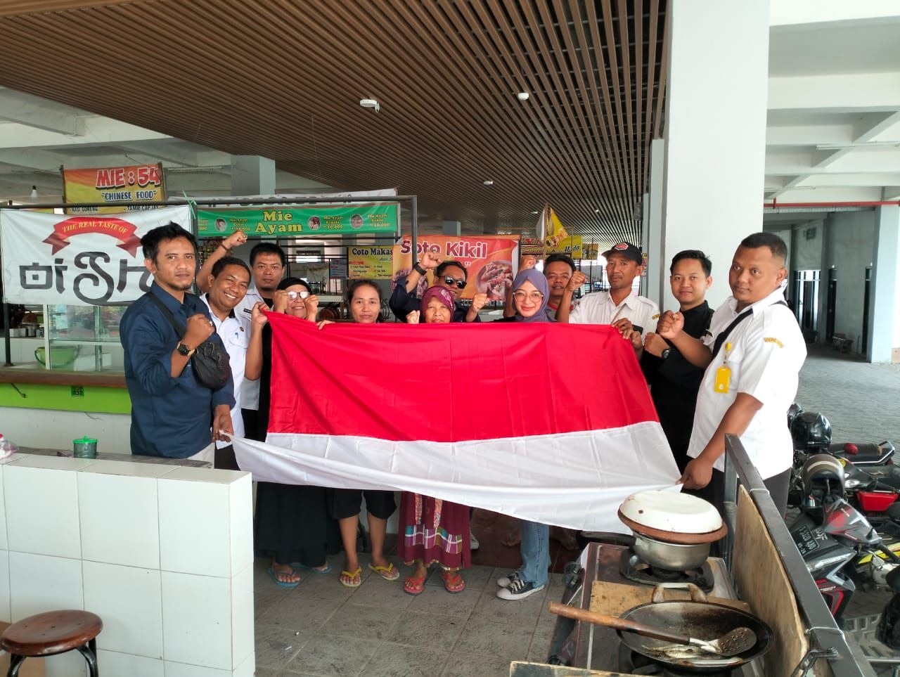 Banyak pedagang dan pengunjung yang antusias menerima bendera merah putih. Ada yang akan dipasang di bedak atau rumah nantinya.