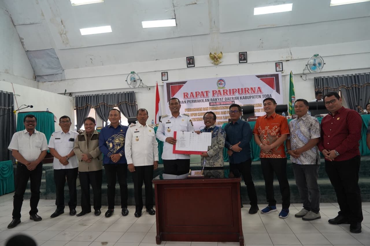 Bupati Toba, Effendi Sintong P. Napitupulu dalam sambutannya menyampaikan ucapan terima kasihkepada segenap Pimpinan dan Anggota Dewan yang telahmemberikan dukungan terhadap pemerintah Kabupatentoba, sehingga seluruh rangkaian rapat paripurna dapat terlaksana dengan baik sejakpenyampaian Nota Pengantar Rancangan Perubahan KUA dan PPAS APBD Tahun Anggaran 2025, dilanjutkan dengan pembahasan di Banggar DPRD Kabupaten dan penandatanganan Nota Kesepakatan Tentang PerubahanKUA dan PPAS APBD Tahun Anggaran 2025.