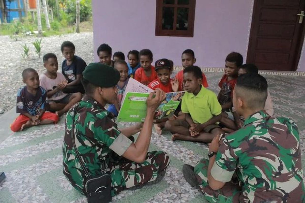 Kegiatan pembinaan Teritorial Yonif Raider 754/ENK yang di pimpin oleh Letnan Dua Inf Amirul, selain mengajak anak – anak untuk membaca buku – buku cerita namuns juga membagikan puluhan buku – buku bacaan tersebut kepada mereka.