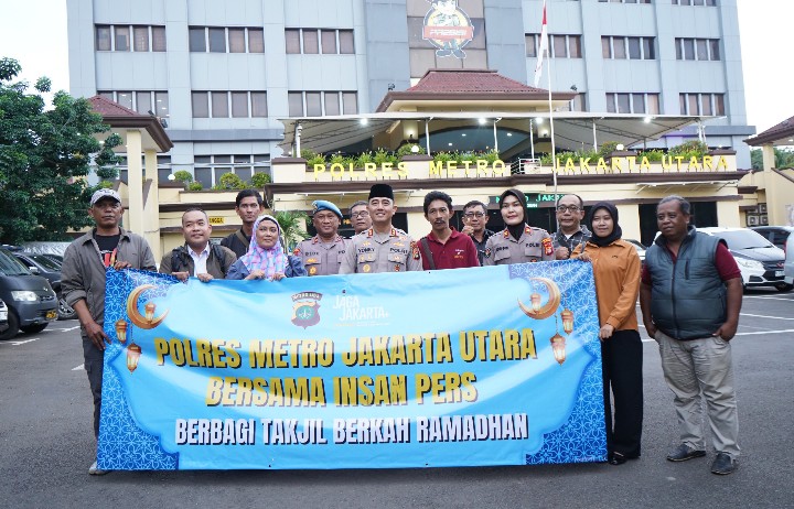 JAKARTA UTARA, DKI JAKARTA—Berbagi Takjil menjadi momen hangat yang digelar Polres Metro Jakarta Utara bersama insan pers dalam menyambut bulan suci Ramadhan 1447 Hijriah. Kegiatan sosial ini berlangsung pada Rabu (25/2/2026) pukul 17.35 WIB di depan Mapolres Metro Jakarta Utara, dipimpin langsung oleh Wakapolres Metro Jakarta Utara, AKBP Rohman Yonky Dilatha.