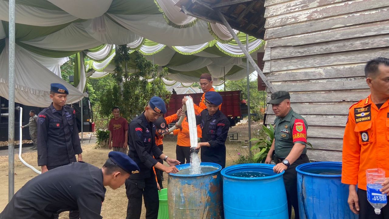 Air bersih yang disalurkan oleh BPBD Bangka dan Kompi 1 Batalyon A Pelapor Sungailiat tersebut ke warga Lingkungan Akeh, Kelurahan Sinar Jaya Jelutung, Kecamatan Sungailiat