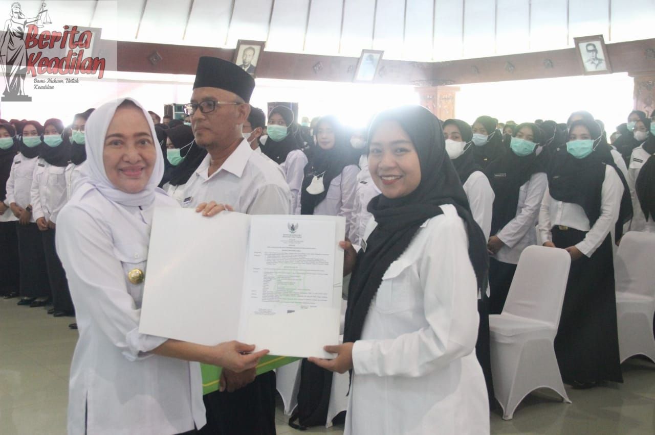 “Pemkab langsung kontrak 5 tahun, kabupaten lain hanya kontrak 1 tahun. Kami ingin memberikan kepastian bapak ibu dalam pekerjaan,” ucap Bupati Anna. Bupati Anna juga berpesan untuk tetap menjaga moralitas dan etika dalam bekerja.