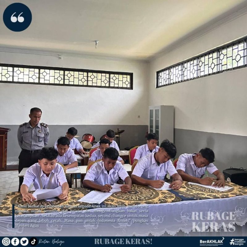 “Kami berharap pemberian Remisi kepada Anak ini akan lebih mendorong mereka untuk semakin giat belajar dan mengembangkan bakat serta keterampilan . Selalu ada kesempatan kedua, second change untuk masa depan yang leboh cerah. Masa pan untuk Indonesia Emas,” pungkas Menteri Agus. (Alex)