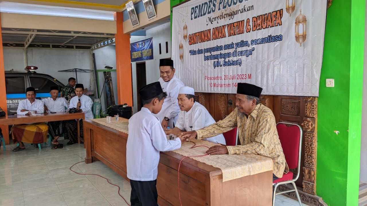 “Kepala Desa Plososetro, Midhkol Huda mengatakan, kegiatan tersebut dalam rangka memperingati Tahun Baru Islam 1 Muharam 1445 Hijriyah dengan membagikan bansos berupa santunan kepada kaum duafa dan anak yatim,”ujar Midhkol Huda Kepala Desa Plososetro.