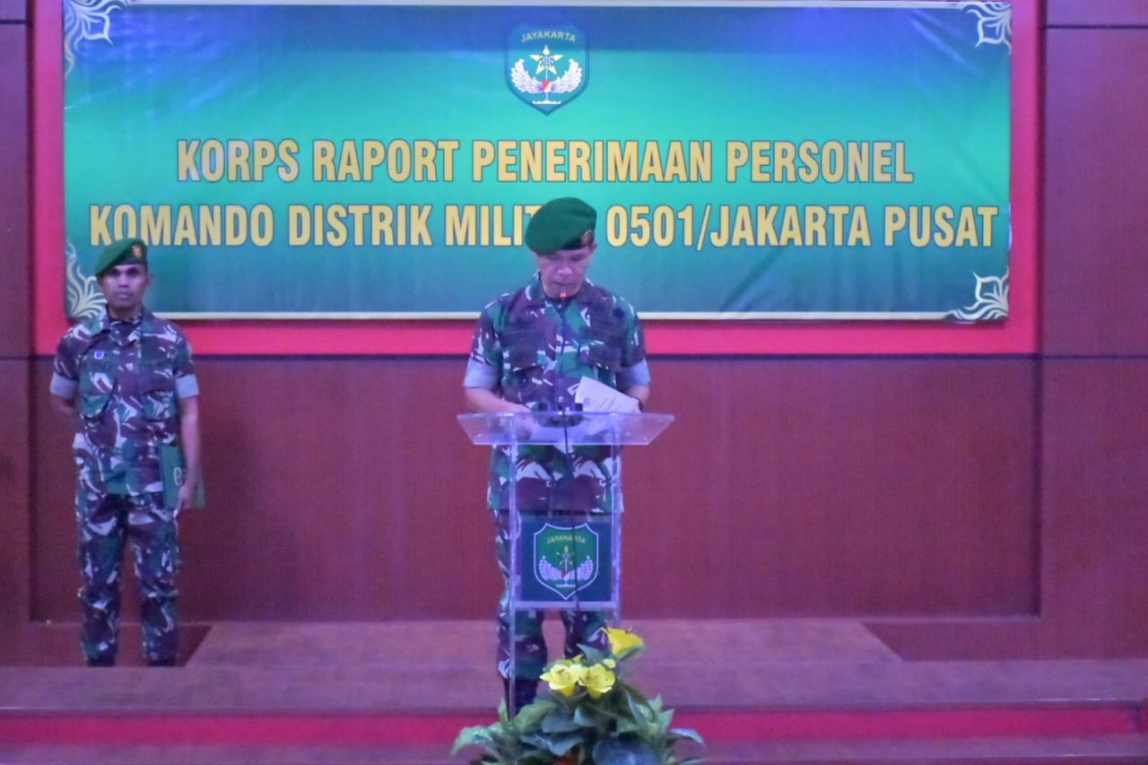 JAKARTA PUSAT (Beritakeadilan, DKI Jakarta) – Dandim 0501/JP Letkol Inf Bangun I.E. Siregar, S.H., MIPOL. Pimpin langsung Upacara Korps raport Penerimaan Personil baru Kodim 0501/JP di Aula lantai III Makodim 0501/JP, Jumat (21/7/2023).