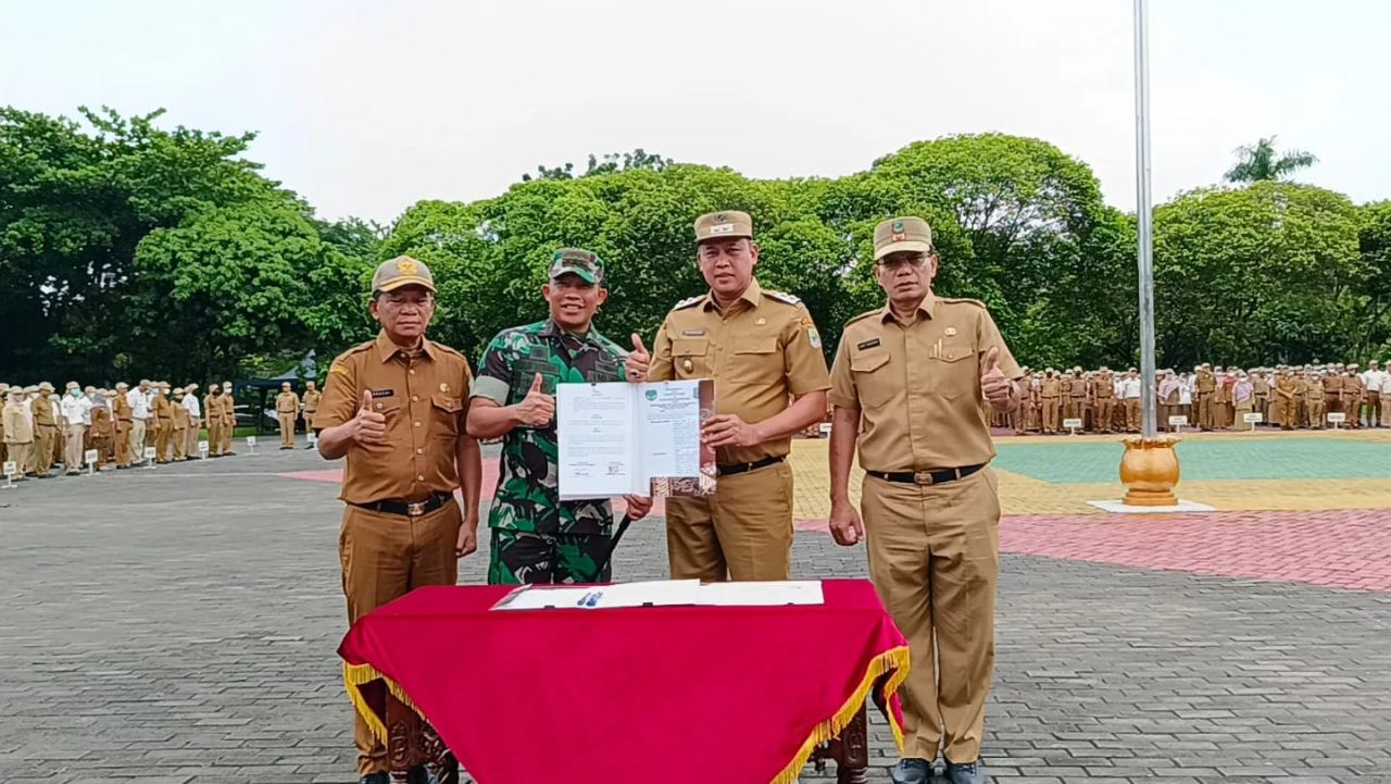 Dandim 0507/Bekasi, Kolonel Kav. Luluk Setyanto.M.P.M., selaku penanggung jawab pelaksanaan TMMD hadir langsung dalam menandatangani kerjasama dengan Plt. Wali Kota Bekasi, Tri Adhianto yang turut didampingi Pj. Sekretaris Daerah Kota Bekasi, Junaedi.