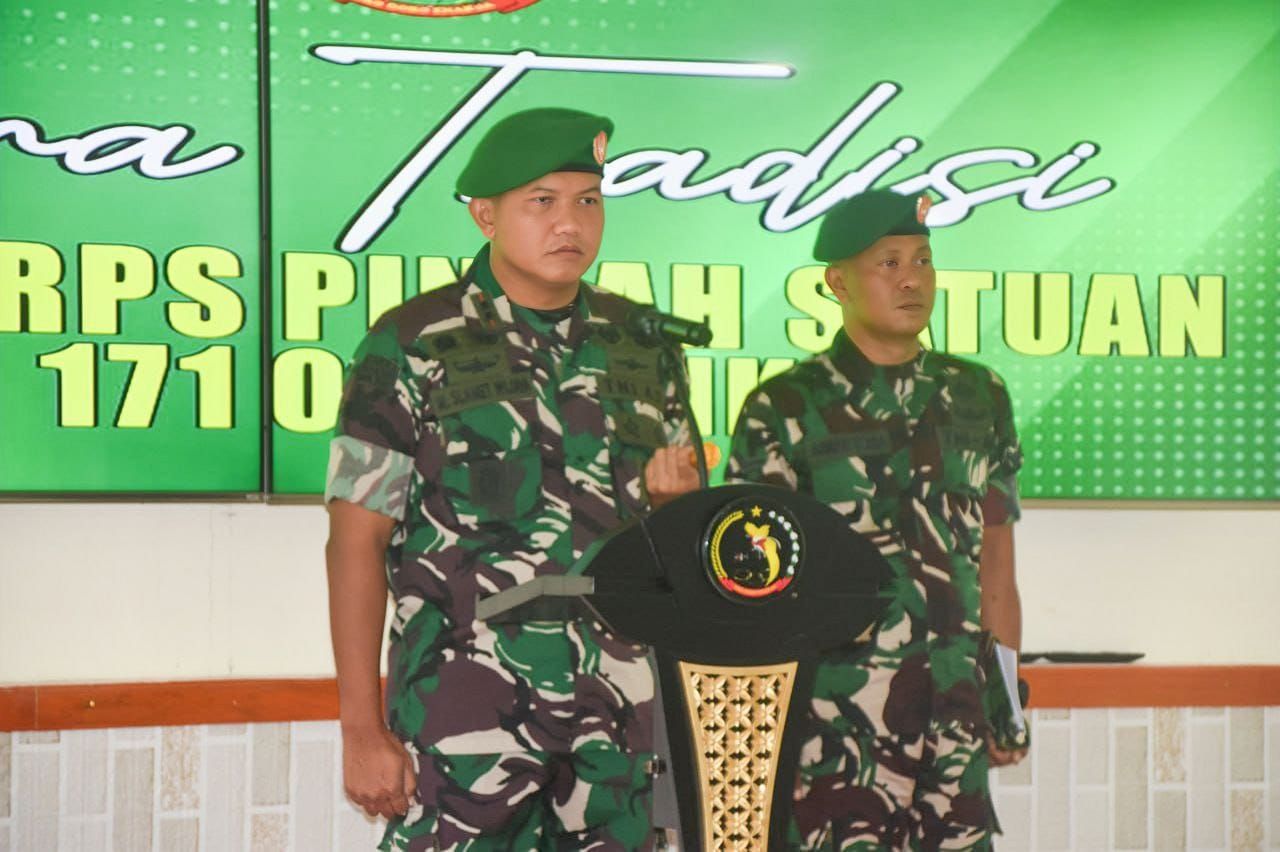 TIMIKA (Beritakeadilan.com, Papua) – Komandan Kodim 1710/Mimika, Letkol Inf M. Slamet Wijaya, S.Sos., M.Han., M.A. memimpin acara tradisi laporan korps pindah satuan di Ruang Rekreasi Kodim 1710/Mimika, Distrik Kuala Kencana, Kabupaten Mimika, Jumat (25/07/2025). Pada kesempatan ini Letda Inf Wahyudi Aditya dan Letda Inf Moso Kogoya yang baru selesai melaksanakan pendidikan Secapa akan dilepas ke Kodam XVII/Cenderawasih sebelum nantinya akan ditempatkan di satuan yang baru.