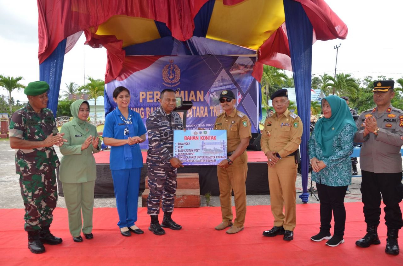 KEPULAUAN MERANTI (Beritakeadilan, Riau) – Komandan Lanal Dumai Kolonel Laut (P) Stanley Lekahena, M.Tr. Hanla., didampingi Ketua Cabang 4 Korcab I DJAI Ny. Stanley menghadiri peresmian pembangunan Kampung Bahari Nusantara Kabupaten Kepulauan Meranti binaan TNI Angkatan Laut, di Desa Alai, Kecamatan Tebing Tinggi Barat, Senin (15/5/2023).