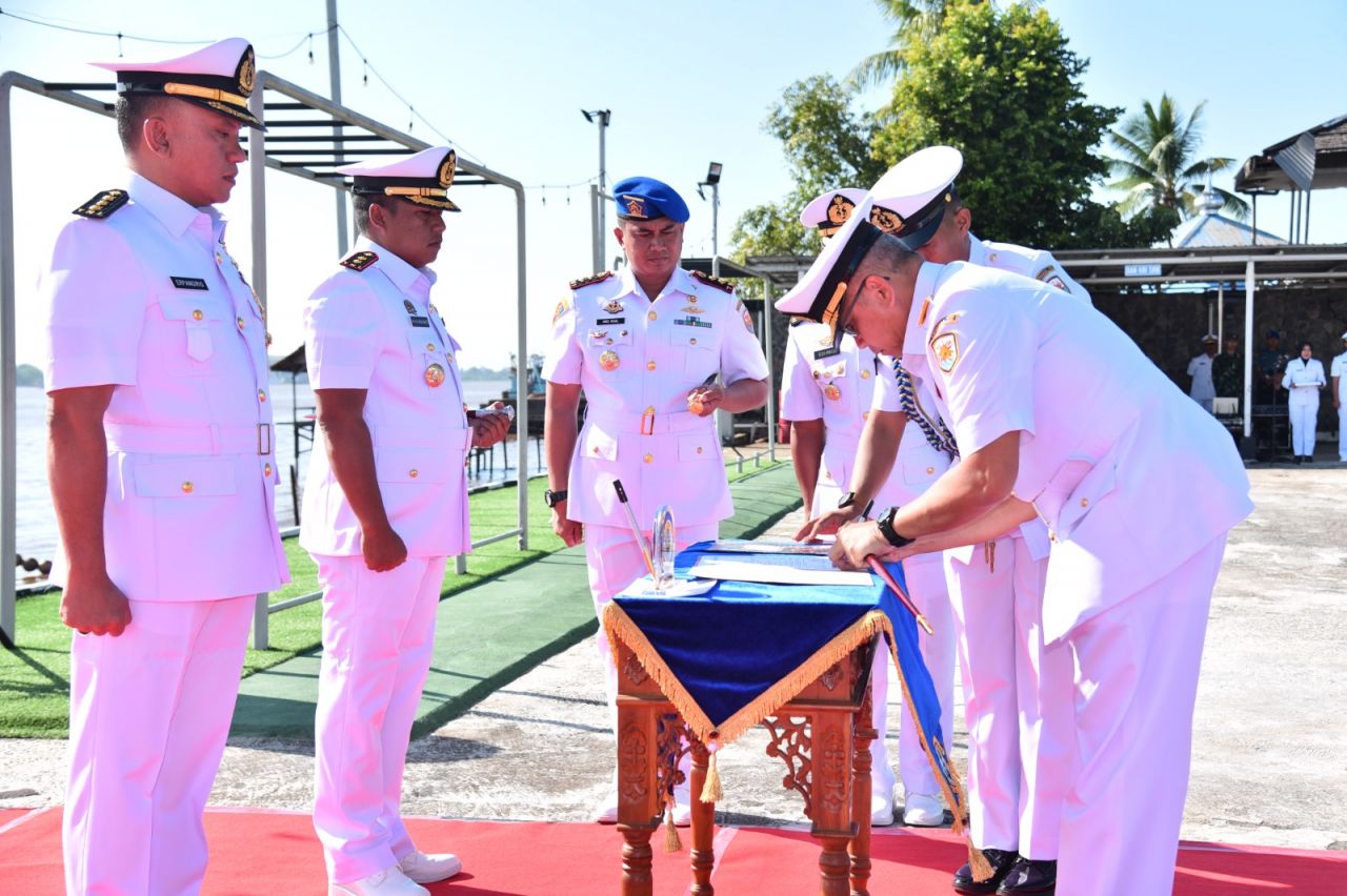 PONTIANAK (Beritakeadilan, Kalimantan Barat) – Komandan Pangkalan Utama TNI Angkatan Laut (Danlantamal) XII Laksamana Pertama TNI Agoeng MKS memimpin jalannya Upacara Serah Terima Jabatan (Sertijab) Komandan Satuan Kapal Patroli (Dansatrol) Lantamal XII yang berlangsung di Dermaga Satrol Lantamal XII, Jalan Komodor Yos Sudarso No. 1 Pontianak Kalimantan Barat, Kamis (13/7/2023).