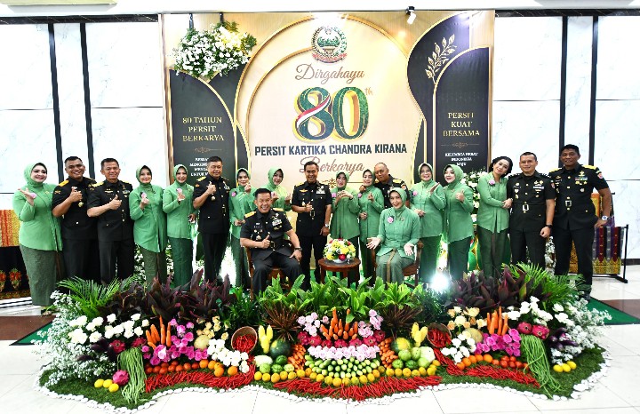 JAKARTA TIMUR , DKI JAKARTA– Komandan Pusat Teritorial Angkatan Darat (Danpusterad) Letjen TNI Mochamad Syafei Kasno bersama Ketua Persit KCK PCBS Pusterad Ny. Indah Syafei menghadiri peringatan Hari Ulang Tahun ke-80 Persit Kartika Chandra Kirana Tahun 2026. Kegiatan tersebut berlangsung di Aula Gajah Mada Mapusterad, Jl. Setu Cipayung, Jakarta Timur, Selasa (28/4/2026).