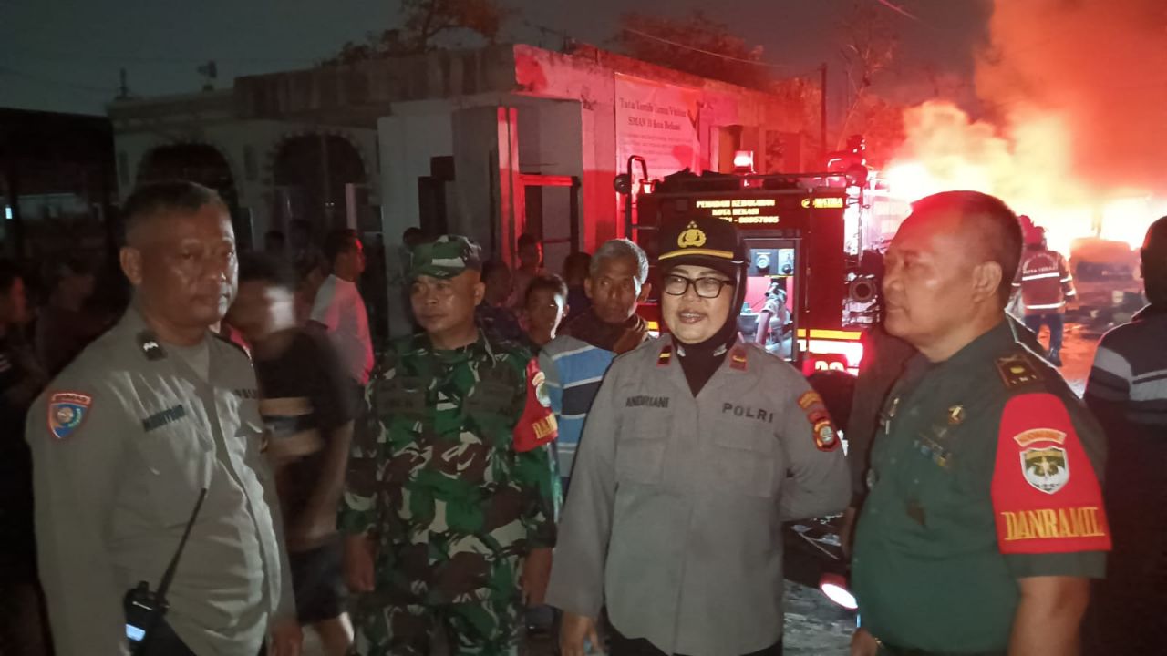 KOTA BEKASI (Beritakeadilan, Jawa Barat) – Komandan Koramil 05/Bantargebang Kodim 0507/Bekasi Mayor Inf Suranto, S.A.P Bersama Muspika Kecamatan Mustika Jaya dan Babinsa Kelurahan Padurenan Sertu Ary fatoni, Sertu Amar dan Serda Tri Haryanto, hadir di lokasi kebakaran Gudang pengolahan Ban Bekas, di Jl. Mawar 5 – 6 Rt. 03 / Rw. 02 Kel. Peduranan Kec. Mustikajaya Kota Bekasi. Rabu (13/9/2023) malam.