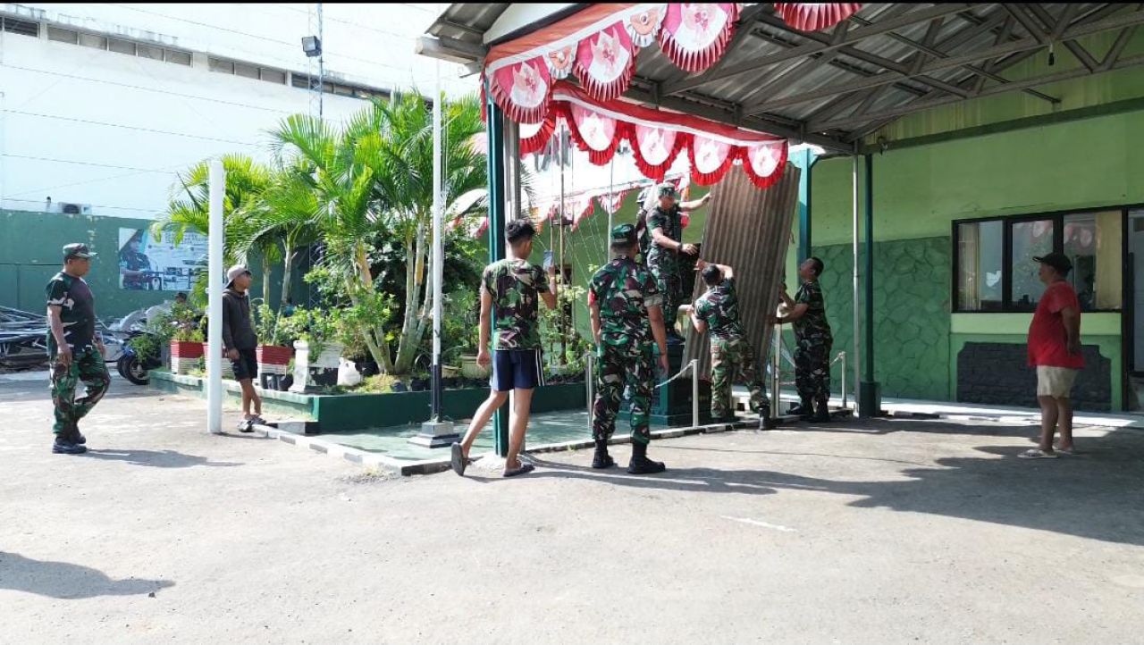 KOTA BEKASI (Beritakeadilan.com, Jawa Barat)-Suasana penuh semangat dan kebersamaan terlihat di halaman Kantor Koramil 01/Kranji Kodim 0507/Bekasi, saat jajaran TNI bersama Danramil 01/Kranji bergotong royong melakukan pembongkaran bangunan lama kantor yang sudah mulai rusak dan usang dimakan usia.
