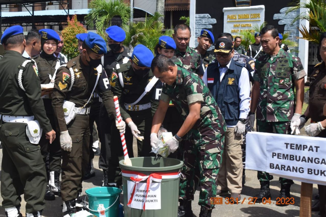 “Oleh karena itu, hari ini kita akan bersama-sama untuk memusnahkan barang bukti Narkotika ini sebagai salah satu bentuk perlawanan kita terhadap Narkotika sebagai musuh negara dan musuh kita bersama,” jelas Kasdam.