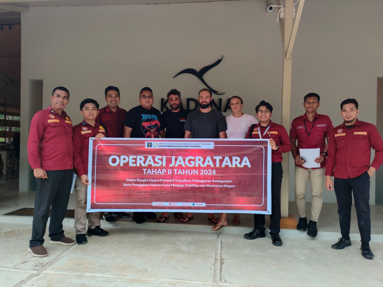 KOTA BAUBAU (Beritakeadilan, Sulawesi Tenggara)-Kantor Imigrasi Baubau melaksanaan kegiatan Operasi JAGRATARA Pengawasan Orang Asing dalam rangka memberikan efek cegah agar tidak terjadi pelanggaran keimigrasian dan penegakan hukum guna menjaga stabilitas dan keamanan negara, Direktur Jenderal Imigrasi melalui Surat Direktur Pengawasan dan Penindakan Keimigrasian Nomor IMI.5-GR.03.06-325 tanggal 05 Agustus 2024 memerintahkan pelaksanaan Operasi “JAGRATARA” Tahap II pengawasan orang asing secara serentak dengan kendali pusat di seluruh wilayah Indonesia Tahun 2024.