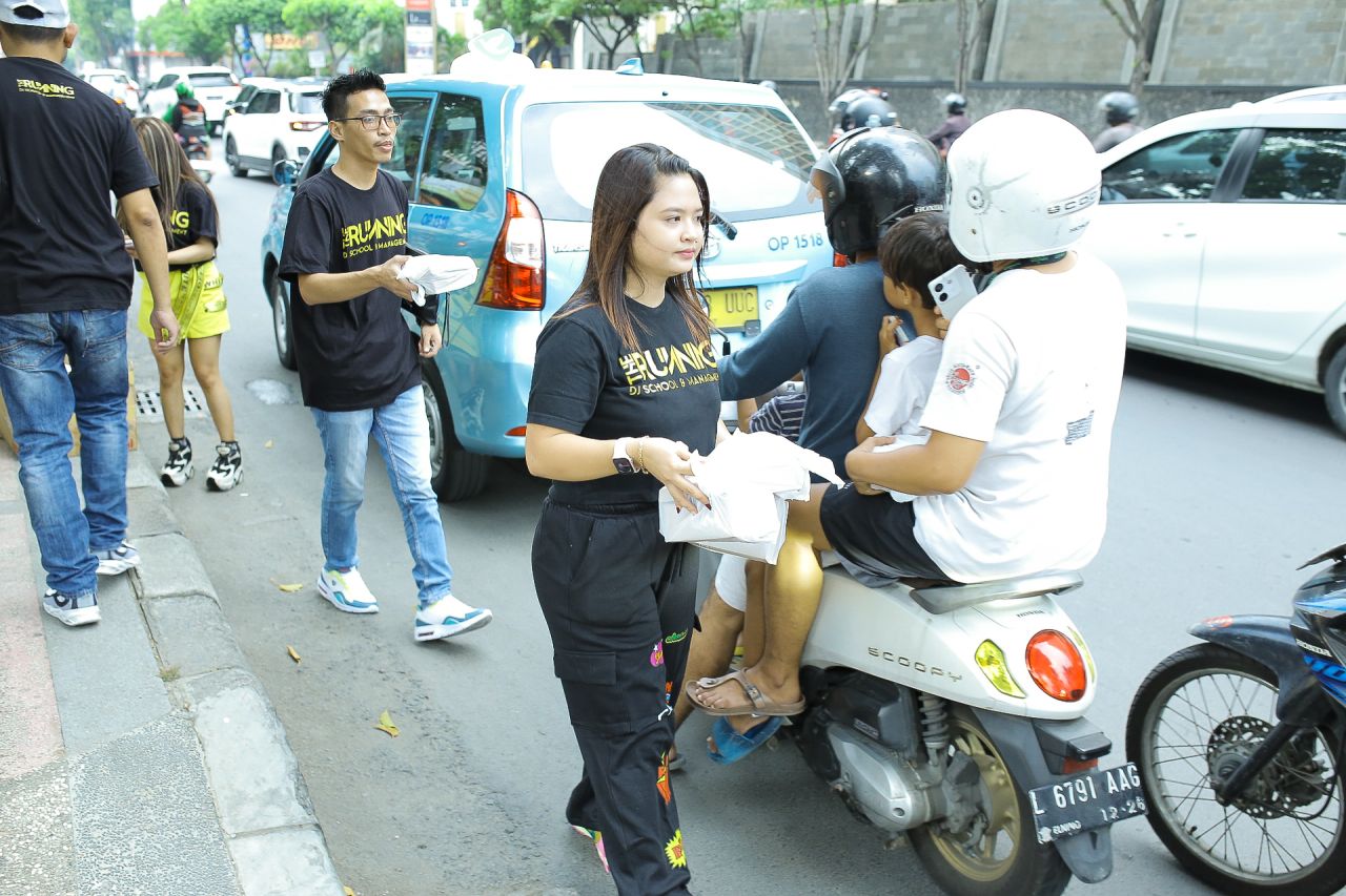 Acara ini diikuti hampir 28 Disc Joecky (DJ) lulusan The Running Dj School and Management yang berdomisili di Surabaya. The Running Dj School and Management yang dipimpin Krestian Kartika Chandra,.SH.,S.Pd atau biasa dipanggil DJ Chans Yakuza ini, membagikan takjil gratis sebanyak ratusan kardus takjil untuk berbuka puasa bagi para pengendara motor dan mobil-mobil yang kebetulan melintasi kawasan Jalan Basuki Rahmat, Surabaya.