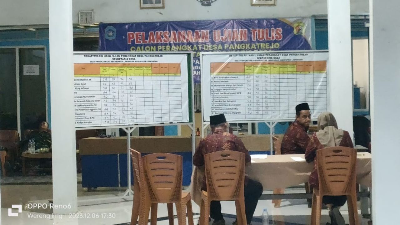 Sementara itu, Endik Saputro, ketua panitia penjaringan perangkat Desa Pangkatrejo saat dikonfirmasi menyebutkan jika menurutnya hasil dari ujian ini sudah sudah sesuai prosesur yang ada