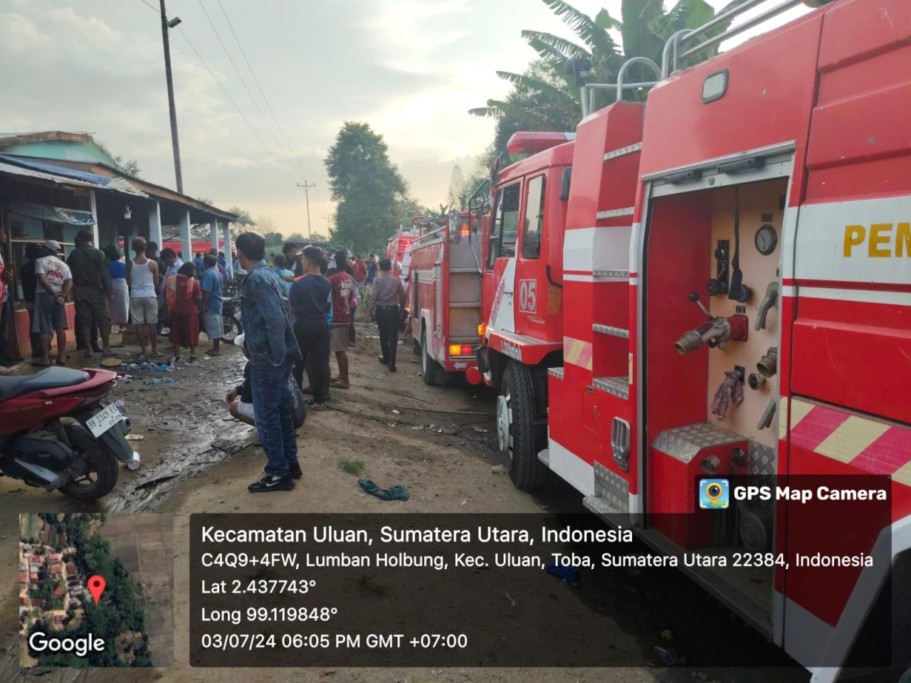 Pada pukul 16.39 wib 1 (Satu) Unit Pemadam kebakaran dari Porsea sampai kelokasi kebakaran dan sekira Pukul 17.00 wib 3 (Tiga) unit Pemadam kebakaran dari Balige sampai dilokasi kebakaran, hingga pada pukul 17.05 wib api dapat dipadamkam sepenuhnya