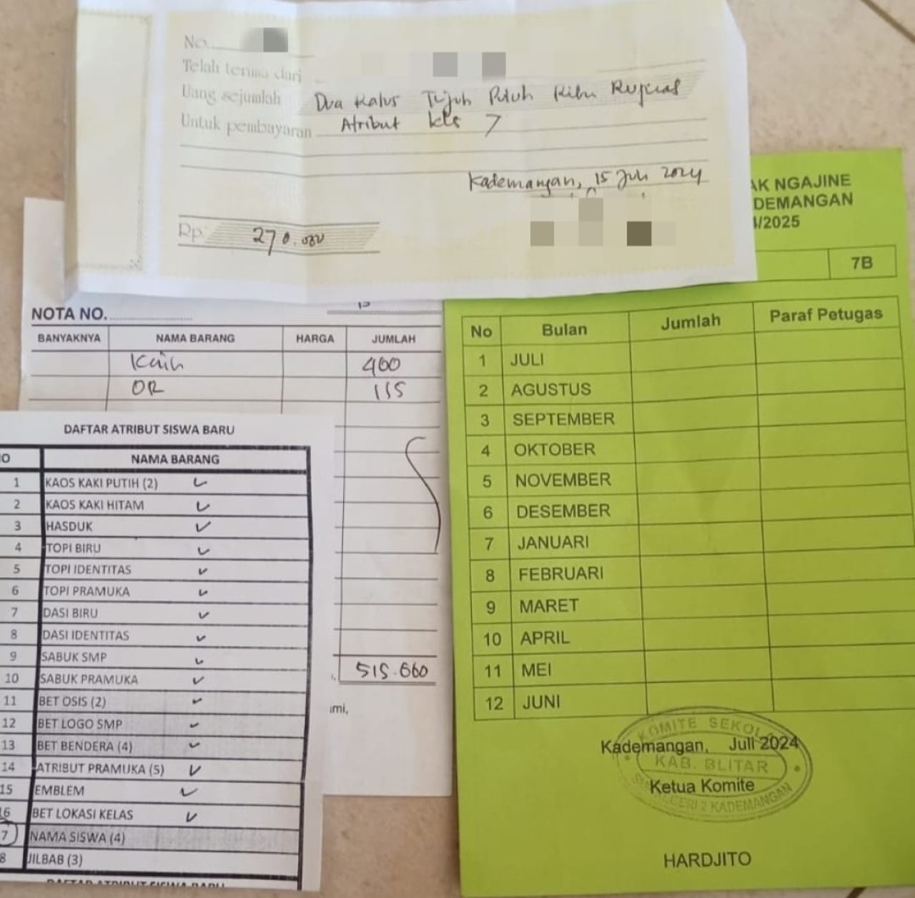 KABUPATEN BLITAR (Beritakeadilan Jawa Timur)-Adanya Praktek dugaan Pungli yang berkedok Penjualan kain seragam memang sudah merata di tiap Sekolah. Seperti halnya yang terjadi di Sekolah Menengah Pertama Negeri (SMPN) 2 Kademangan, Kabupaten Blitar, Provinsi Jawa Timur. Dikabarkan, SMPN 2 Kademangan dengan sengaja telah menjual kain seragam sekolah (Biru Putih dan Pramuka) dengan harga Rp. 400.000,- , Sedangkan Untuk Kaos Olah Raga Rp. 115.000,- Ditambah Dengan Atribut Sebesar Rp. 270.000,-.