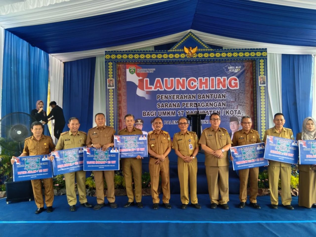 KOTA PALEMBANG (Beritakeadilan, Sumatera Selatan) – Dinas Perdagangan Provinsi Sumatera Selatan (Sumsel) melaunching penyerahan bantuan sarana perdagangan kepada para pelaku Usaha Mikro Kecil dan Menengah (UMKM) Se-17 Kabupaten Kota di Sumsel.