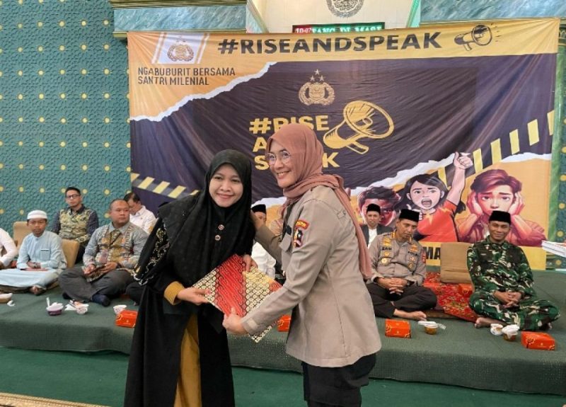 “Bulan Ramadan penuh berkah, bersama santri hati bahagia. Jangan diam jika ada masalah, berani bicara selamatkan sesama,” tutupnya dengan pantun.