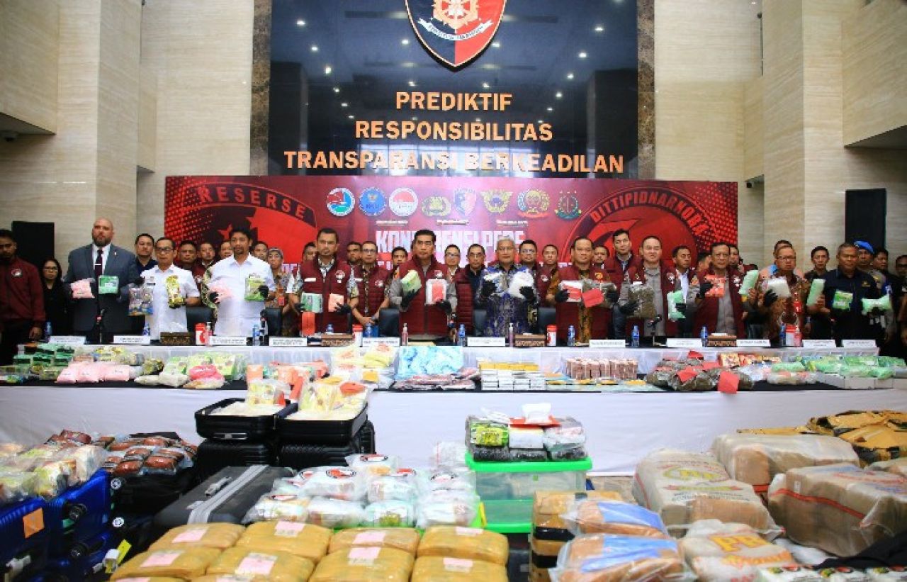 Dari 80 perkara tersebut, Polri telah menetapkan 136 tersangka. Adapun barang bukti yang berhasil disita yaitu sabu seberat 1,7 ton, ganja 1,12 ton, ekstasi 357.731 butir, ketamin 932,3 gram, double L 127.000 butir, kokain 2,5 kilogram, tembakau sintetis 9 kilogram, hasish seberat 25,5 kilogram, MDMA 4.110 gram, mepherdrone 8.157 butir dan happy water 2.974,9 gram.