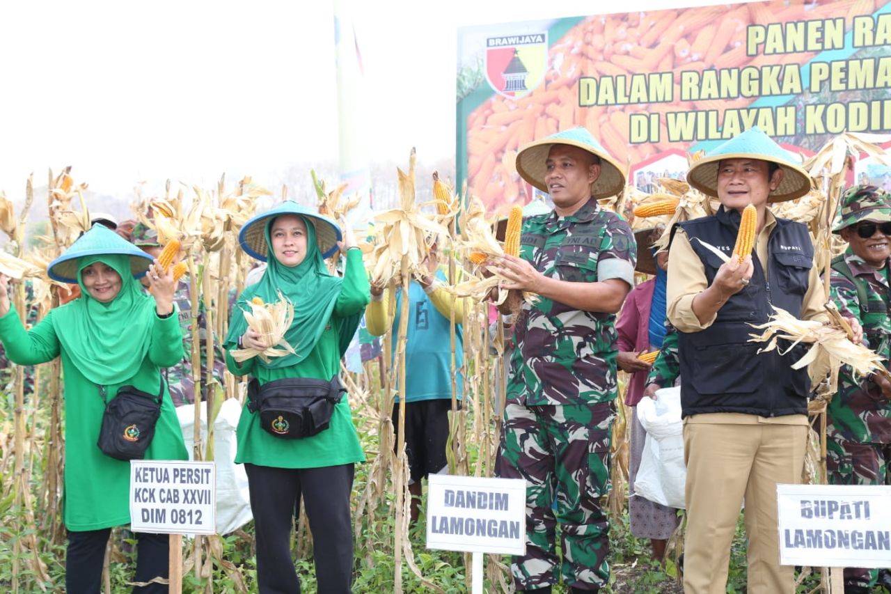 LAMONGAN (Beritakeadilan, Jawa Timur) – Untuk mendukung pemerintah dalam program ketahanan pangan, Kodim 0812/Lamongan melaksanakan panen raya jagung yang bertempat di RPH Sukobendu BKPH Lawangagung Desa Tunggunjagir Kecamatan Mantup Kabupaten Lamongan dalam rangka pemanfaatan lahan tidur. Selasa (23/05/2023).