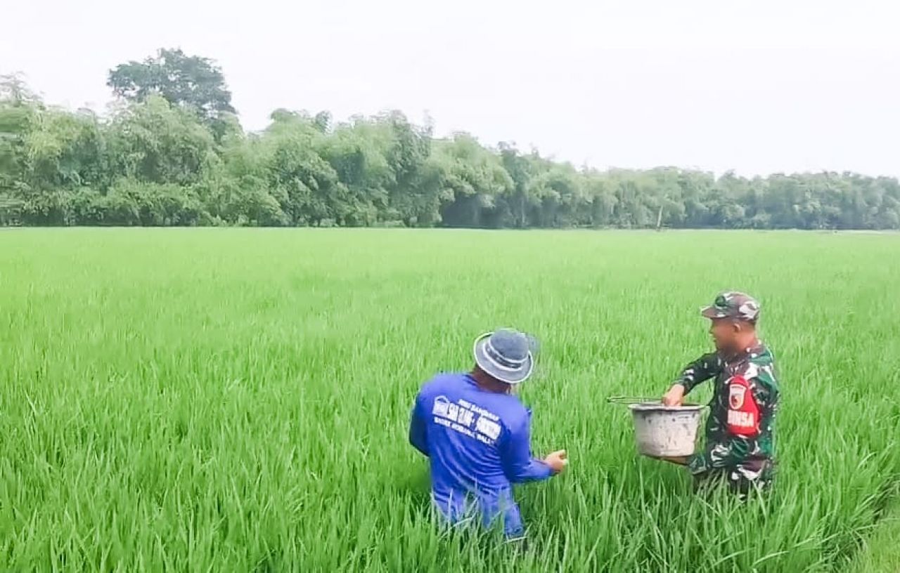 KABUPATEN BOJONEGORO (Beritakeadilan.com, Jawa Timur) – Dalam rangka mendukung program pemerintah dibidang ketahanan pangan, Bintara Pembina Desa atau Babinsa Koramil 03/Balen Kodim 0813 Bojonegoro, Serda Jamari, mendampingi salah satu petani Desa Sarirejo dalam merawat tanaman padi, Jum’at (27/12/2024).