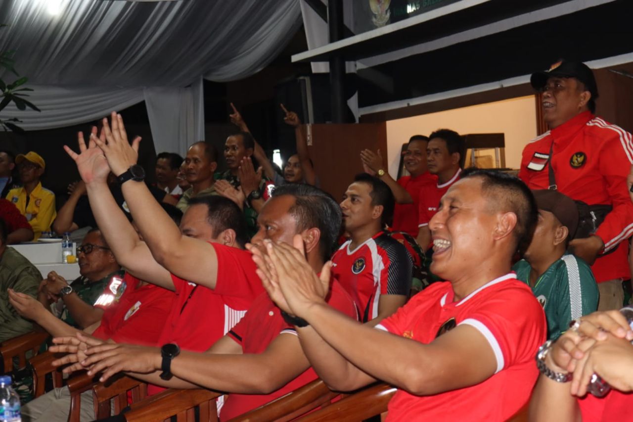 Nobar semifinal Piala Asia U-23 atau AFC U23 Asian Cup 2024 Indonesia vs Uzbekistan dihadiri oleh Walikota Jakarta Selatatan Munjirin, Dandim 0504/Jakarta Selatan Kolonel Inf Roy Fakhrul Rozi, Kapolres Metro Jakarta Selatan Kombes Ade Rahmad Idnal dan para jajaran serta warga masyarakat