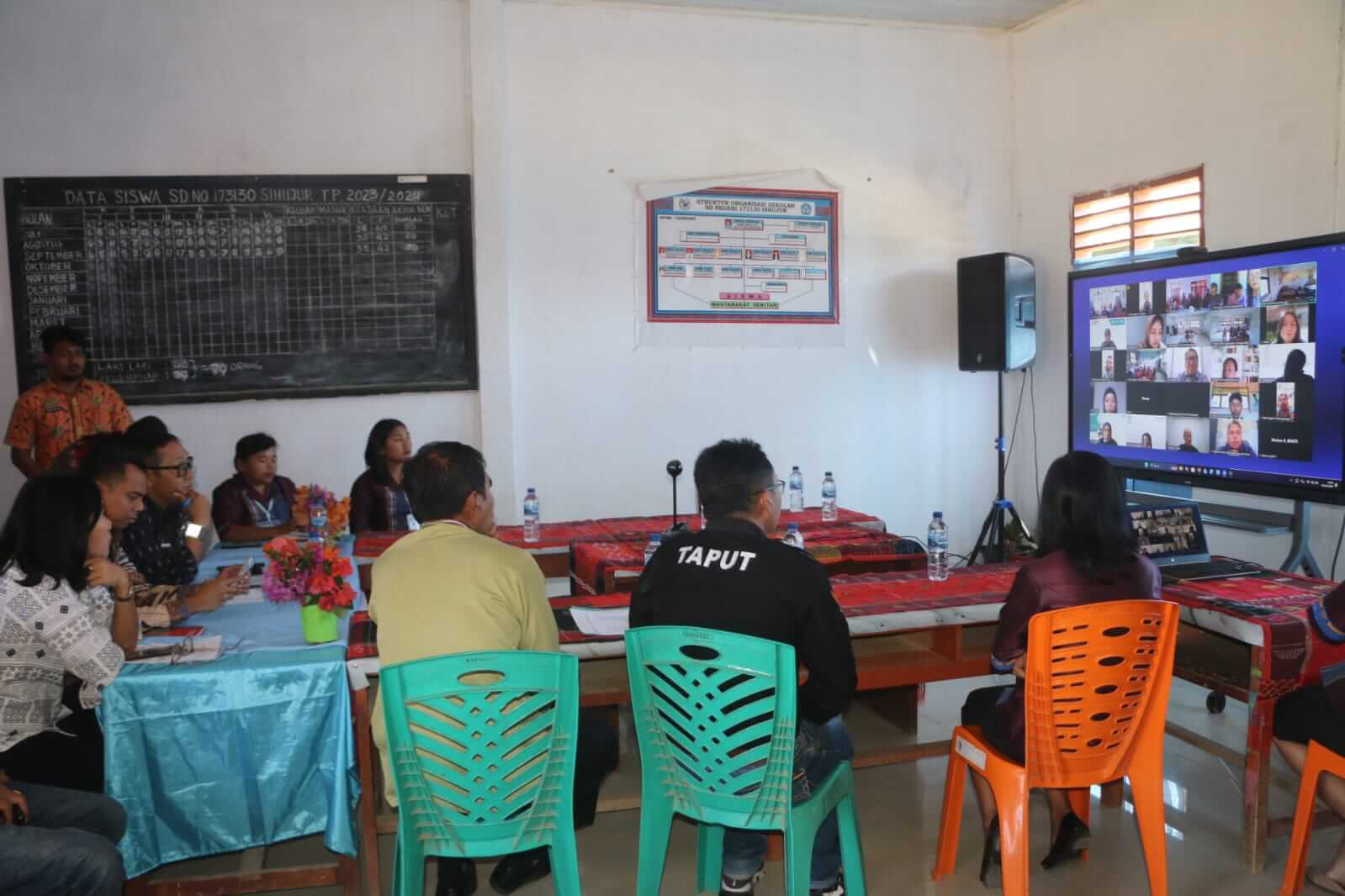 KABUPATEN TAPANULI UTARA, SUMATERA UTARA- Bupati Tapanuli Utara Dr. Jonius Taripar Parsaoran Hutabarat, S.Si., M.Si., melakukan audiensi sekaligus evaluasi koneksi jaringan internet satelit Bakti dari Kementerian Komunikasi dan Digital (Komdigi) pada 12 sekolah di lingkungan Pemerintah Kabupaten Tapanuli Utara. Kegiatan ini dipusatkan di SD Negeri No. 173130 Sihujur dan diikuti Wakil Bupati Dr. Deni Parlindungan Lumbantoruan, M. Eng serta 12 kepala sekolah penerima manfaat secara daring melalui aplikasi Zoom dari masing-masing sekolah, di Desa Sihujur, Kecamatan Tarutung, Kamis (5/3/2026).