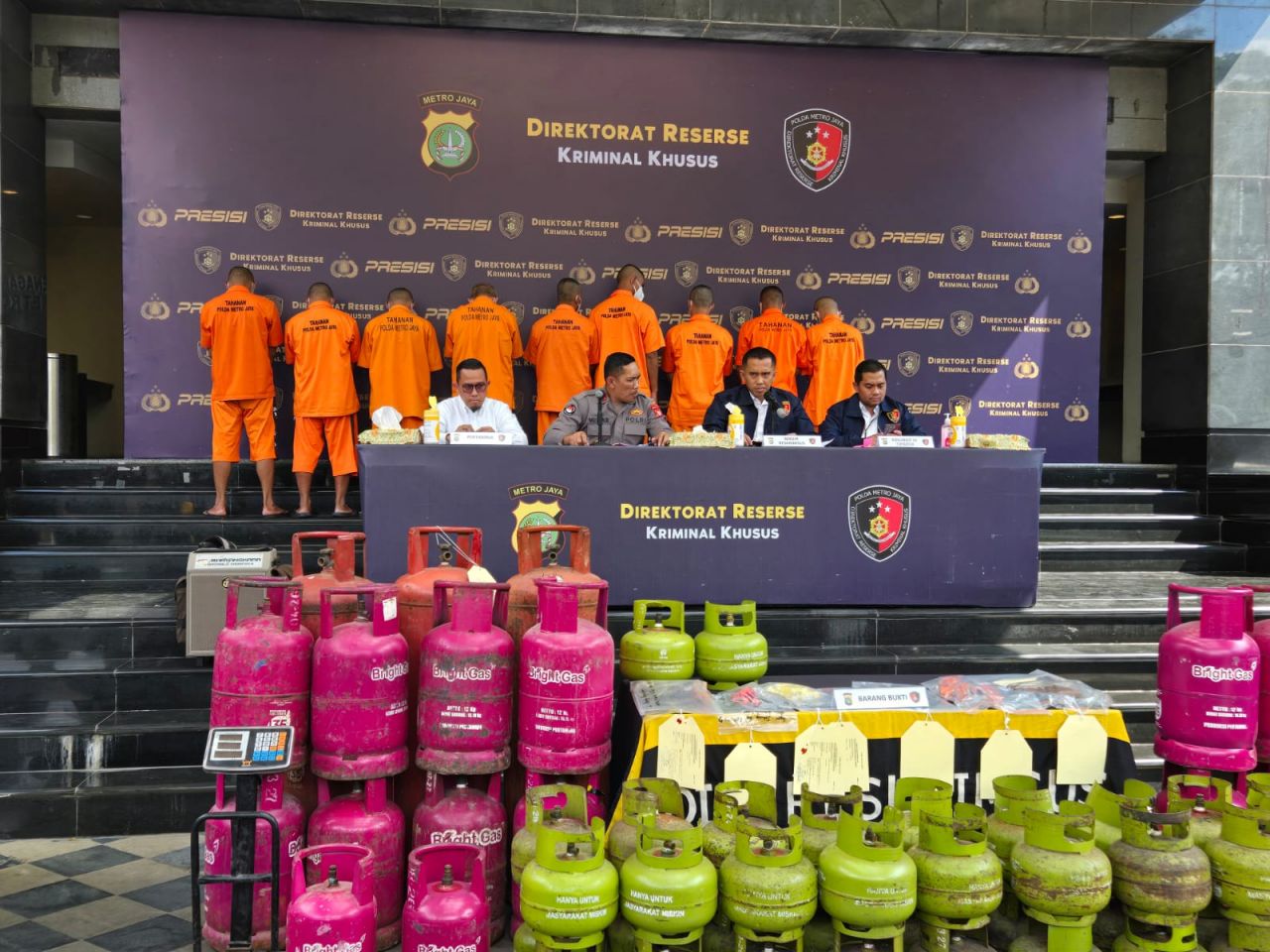 “Para pelaku memindahkan isi gas elpiji ukuran 3 kg (subsidi) ke tabung gas elpiji kosong ukuran 12 kg dan 50 kg (non-subsidi),” ujar Wadirreskrimsus dalam konferensi pers, Kamis (13/2/2025).