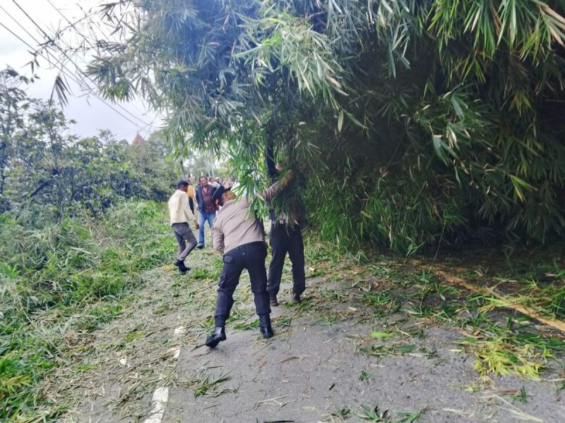 “Kami langsung turun ke lokasi setelah mendapatkan laporan adanya pohon tumbang yang menghalangi jalan raya. Bersama anggota, BNPB dan warga, kami bergotong royong memotong dan mengevakuasi pohon tersebut agar arus lalu lintas bisa kembali normal,” kata Libertius
