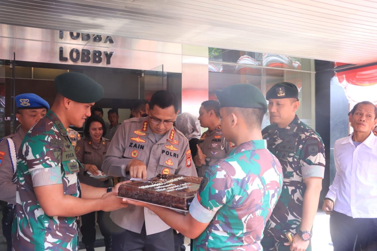 Nampak suasana penuh keakraban itu terlihat saat pemotongan kue ulang tahun yang dibawa TNI tersebut, acara dilanjutkan dengan ramah tamah seluruh personel TNI-Polri, diakhiri dengan sesi foto bersama di lapangan apel Polres Metro Tangerang Kota.