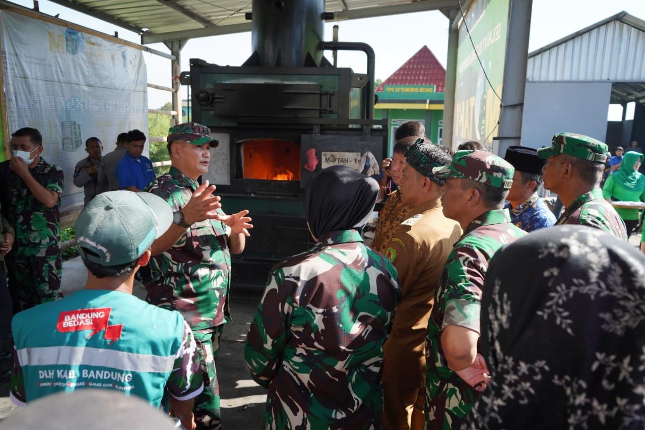 KABUPATEN BANDUNG (Beritakeadilan, Jawa Barat) – Berbagai upaya untuk membantu mengatasi kesulitan masyarakat, Pangdam III/Siliwangi Mayjen TNI Arief Kunto Wibowo didampingi Ketua Persit Kartika Chandra Kirana Daerah III/Siliwangi Ny. Mia Kunto Arief Wibowo beserta pejabat Kodam melaksanakan peninjauan Mesin Olah Runtah (MOTAH-1 Siliwangi) di wilayah kerja Sektor 7 Citarum Harum Desa Cangkuang Wetan, Dayeuhkolot, Kab. Bandung, Senin (22/05/23).