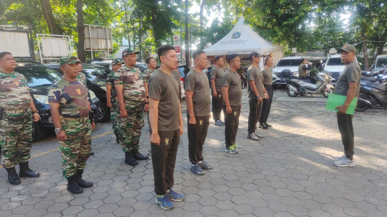 Dipimpin Wadanramil Kapten Czi Sefanye Banik, personil melaksanakan olahraga bersama di area Makoramil Jl.Kampung Irian No.1 RT 05/05 Kel.Serdang.