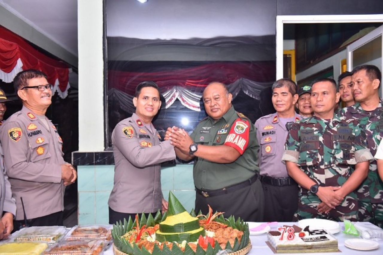 Kapolsek Cengkareng bersama personel tiba di Markas Koramil 04/Cengkareng dengan membawa kue dan nasi tumpeng sebagai lambang persahabatan yang erat antara kedua lembaga penegak hukum ini.
