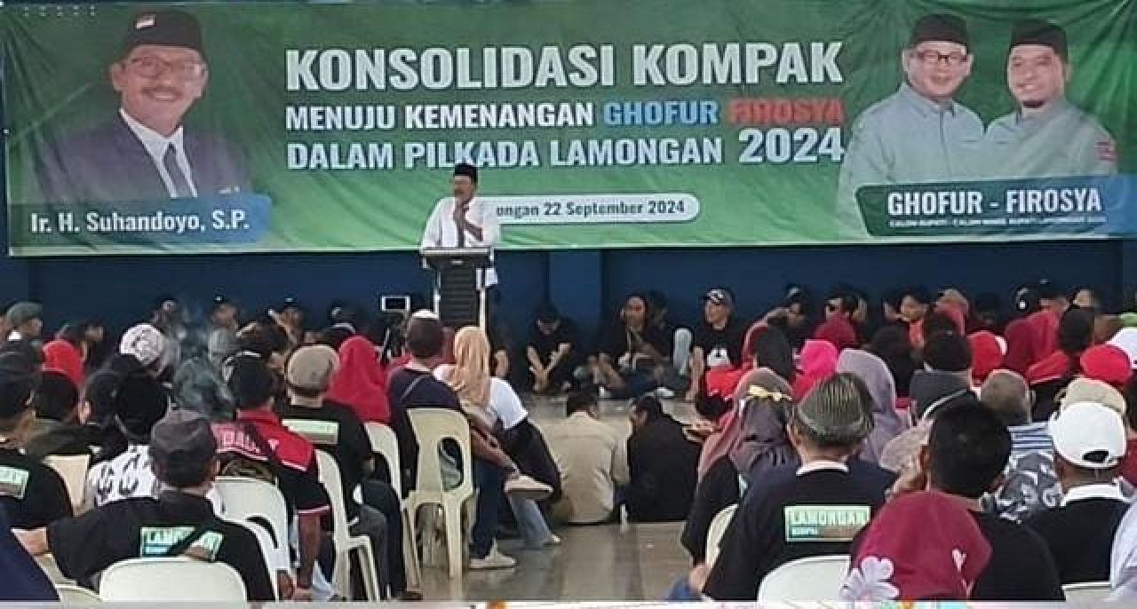 Di sisi lain paslon Ghofur – Firosya menghadiri pendukungya yang tergabung dalam Kompak di Gedung Korpri Lamongan. Ditempat ini, Ghofur-Firosya disambut massa relawan Kompak yang dipimpin Suhandoyo di Gedung Korpri Lamongan.